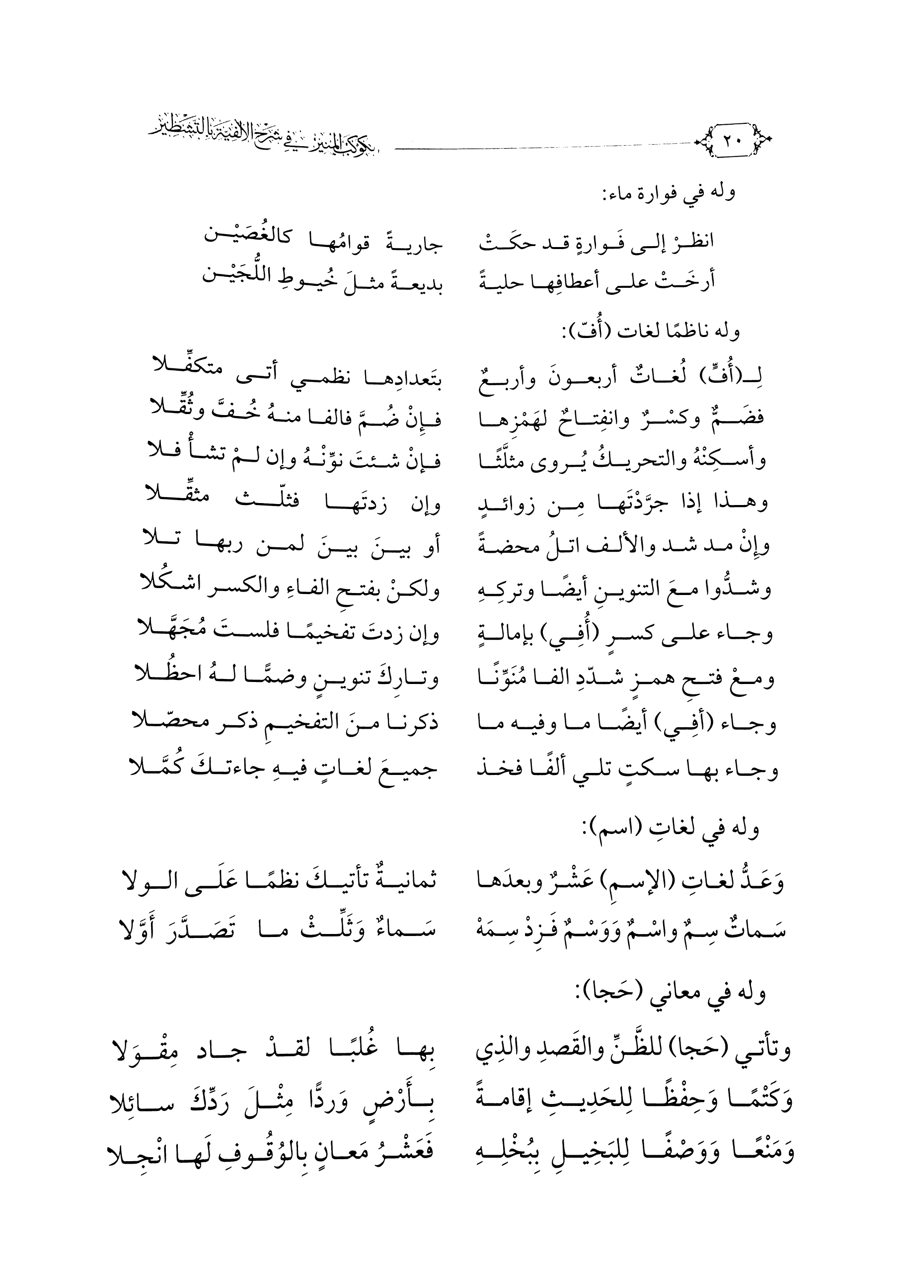 لِـ (أُفٍّ) لُغاتٌ أربعونَ وأربعٌ ... بتَعدادِها نظمي أتى متكفِّلَا ...