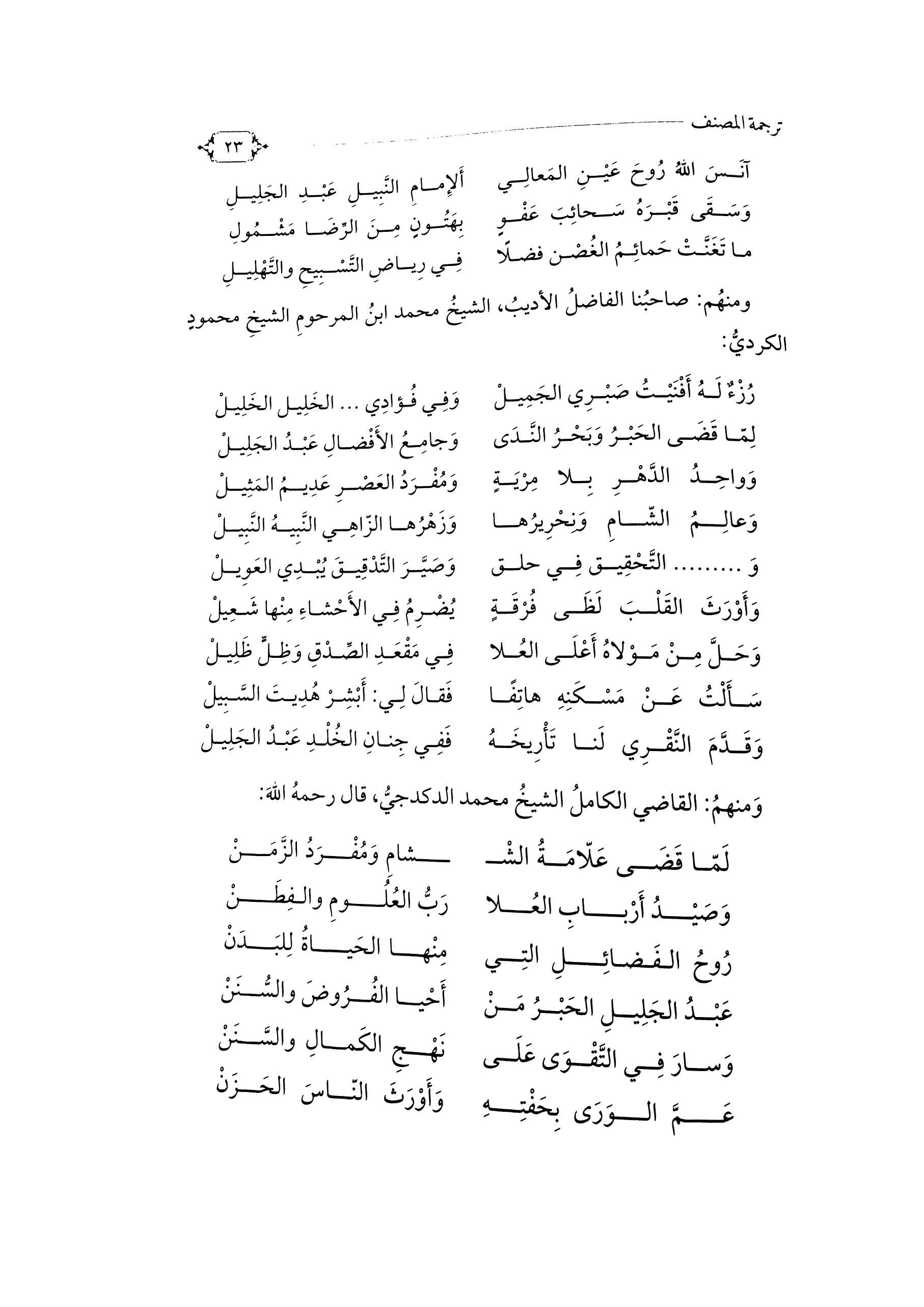 ومنهُم صاحبُنا الفاضلُ الأديبُ الشيخُ محمد بنُ المرحومِ الشيخِ محمودٍ الكرديِّ:
