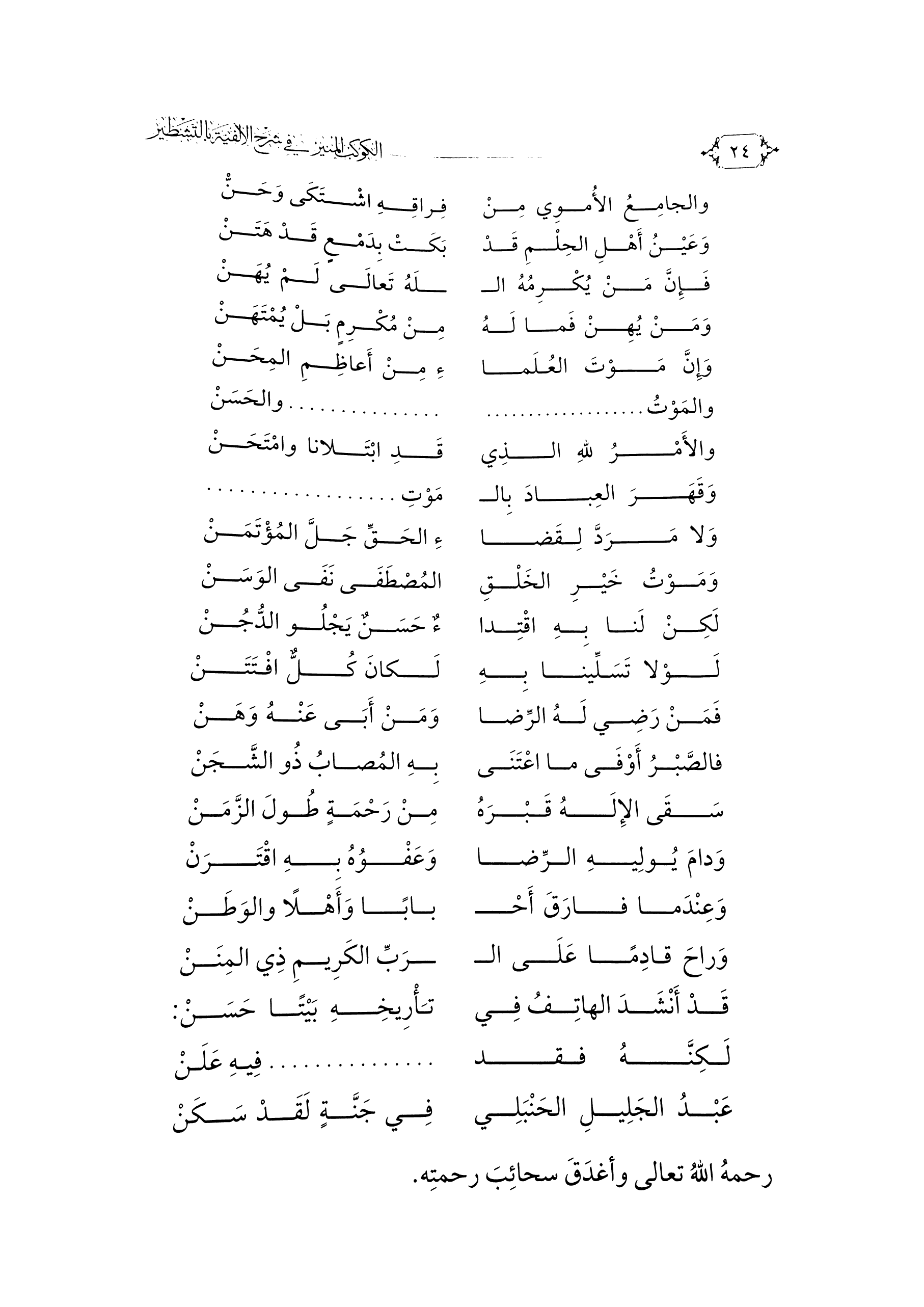 قَدْ أَنْشَدَ الهَاتِفُ فِي ... تَأْرِيخِهِ بَيْتًا حَسَنْ: ...