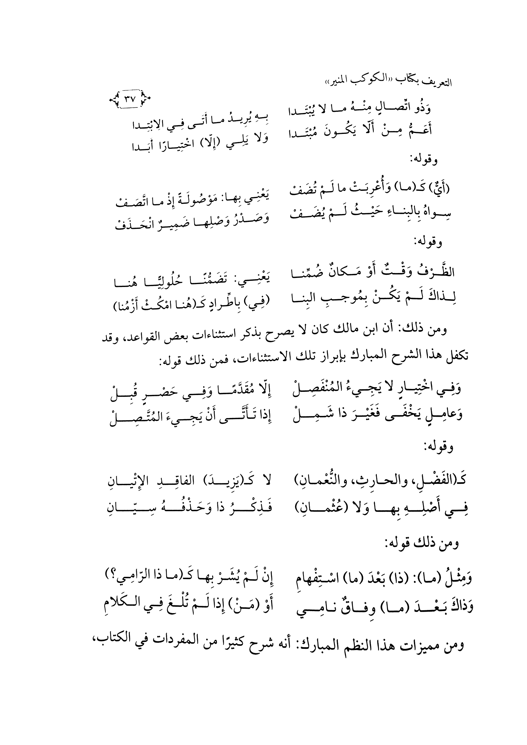 كتاب الكوكب المنير في شرح الألفية بالتشطير