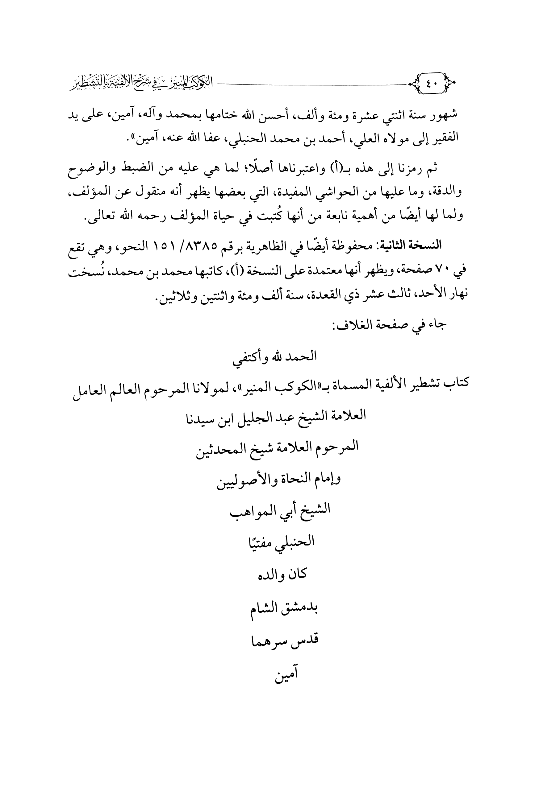 كتاب تشطير الألفية المسماة بالكوكب المنير لمولانا المرحوم العالم العامل