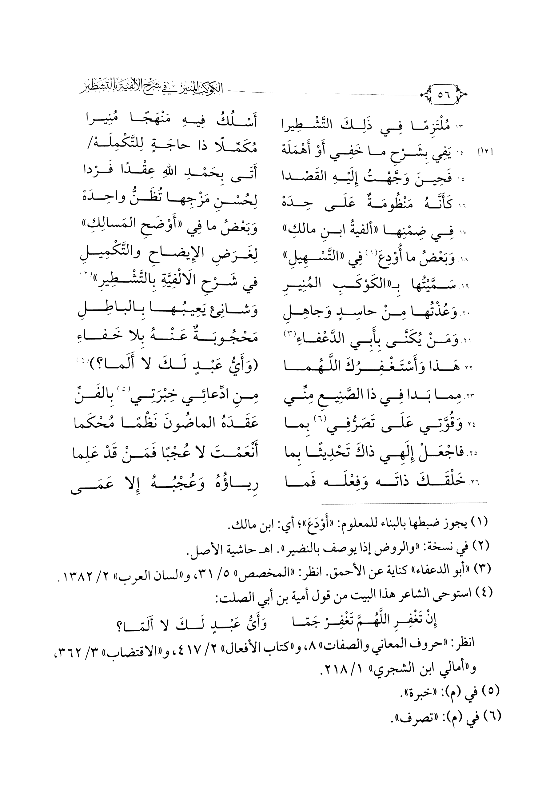 ١٣. مُلْتَزِمًا فِي ذَلِكَ التَّشْطِيرَا ... أَسْلُكُ فِيهِ مَنْهَجًا مُنِيرَا ...