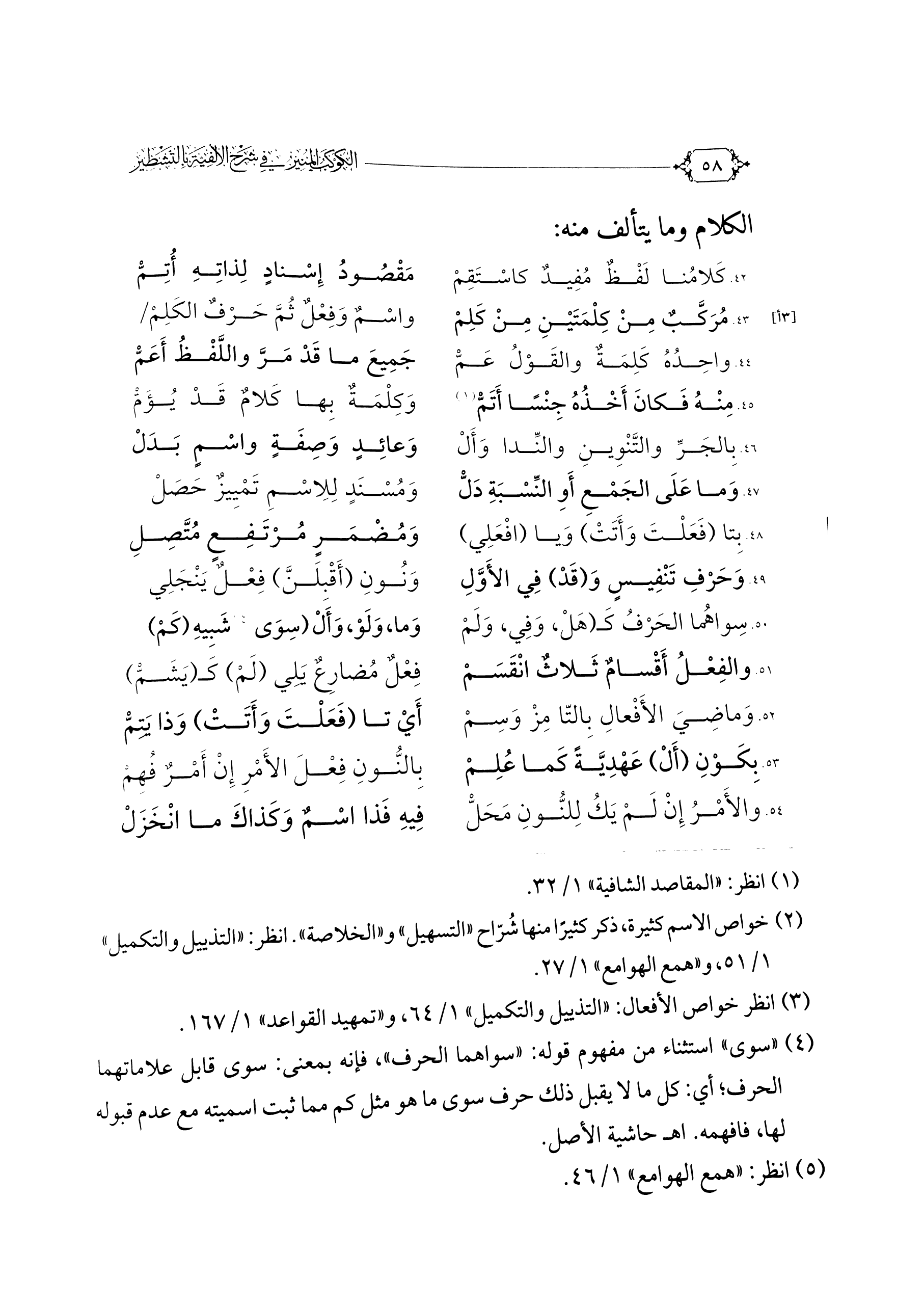 ٤٢. كَلَامُنَا لَفْظٌ مُفِيدٌ كَاسْتَقِمْ ... مَقْصُودُ إِسْنَادٍ لِذَاتِهِ أُتِمّْ ...