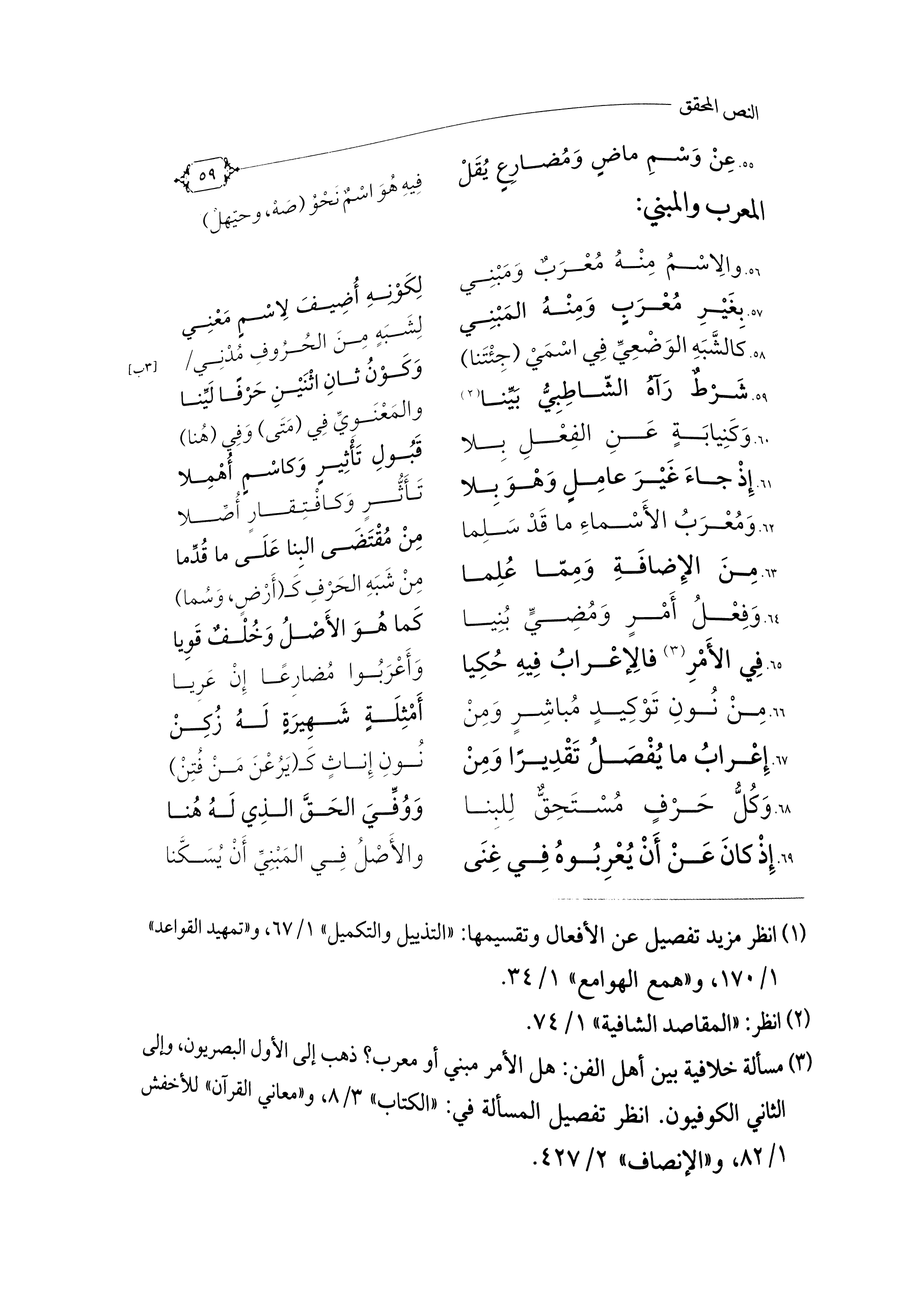 \٣ ب\ ... وَكَوْنُ ثَانِ اثْنَيْنِ حَرْفًا لَيِّنَا ... ٥٨. كَالشَّبَهِ الوَضْعِيِّ فِي اسْمَيْ (جِئْتَنَا) ...