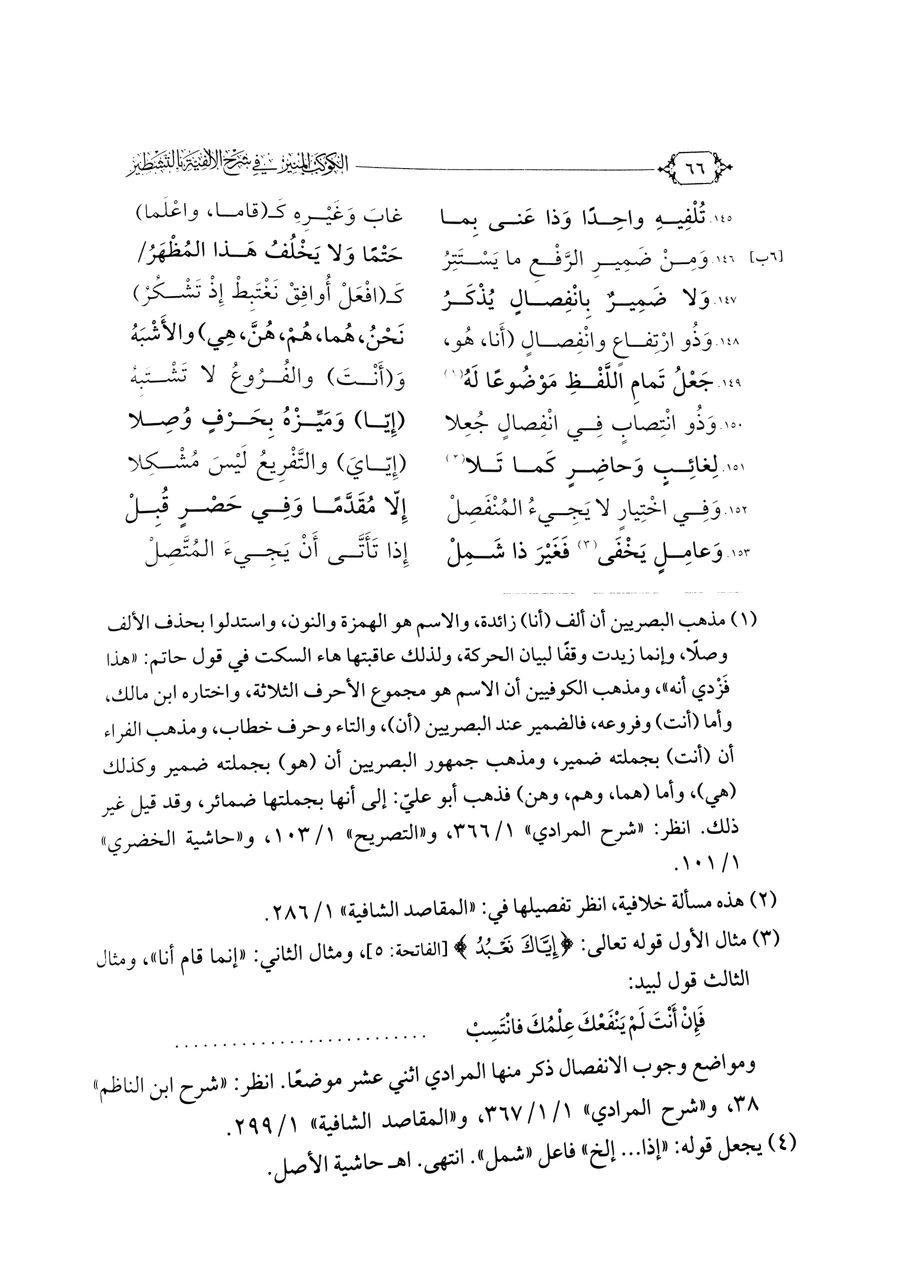 ١٤٨. وَذُو ارْتِفَاعٍ وَانْفِصَالٍ (أَنَا، هُو، ... نَحْنُ، هُمَا، هُمْ، هُنَّ، هِي) وَالأَشْبَهُ ...
