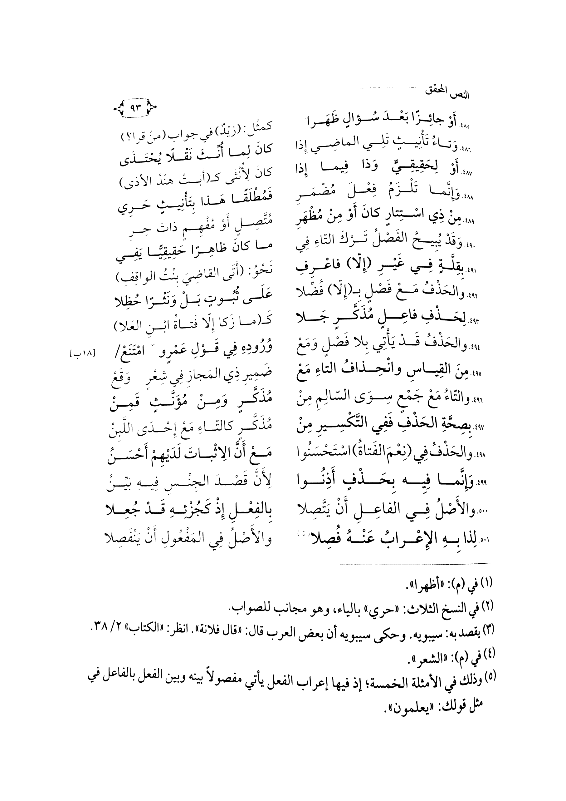 \١٨ ب\ ... وُرُودِهِ فِي قَوْلِ عَمْرٍو (¬٣) امْتَنَعْ ... ٤٩٤. وَالحَذْفُ قَدْ يَأْتِي بِلَا فَصْلٍ وَمَعْ ...