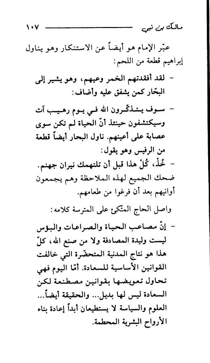 ضحك الجميع لهذه الملاحظة وهم يجمعون أوانيهم بعد أن فرغوا من طعامهم. واصل الحاج المتكئ على المترسة كلامه: