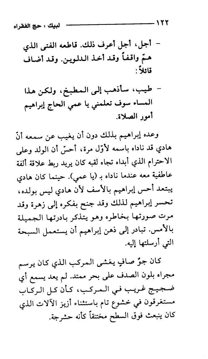 - طيب، سأذهب إلى المطبخ، ولكن هذا المساء سوف تعلمني يا عمي الحاج إبراهيم أمور الصلاة.