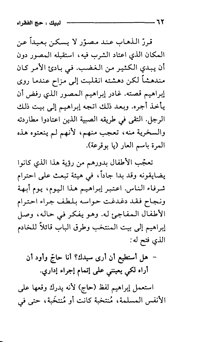 استعمل إبراهيم لفظ (حاج) لأنه يدرك وقعها على الأنفس المسلمة، منتخبة كانت أو منتخبة، حتى في
