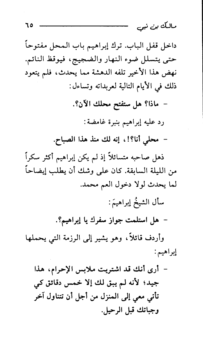 ذهل صاحبه متسائلا إذ لم يكن إبراهيم أكثر سكرا من الليلة السابقة. كان على وشك أن يطلب إيضاحا لما يحدث لولا دخول العم محمد.