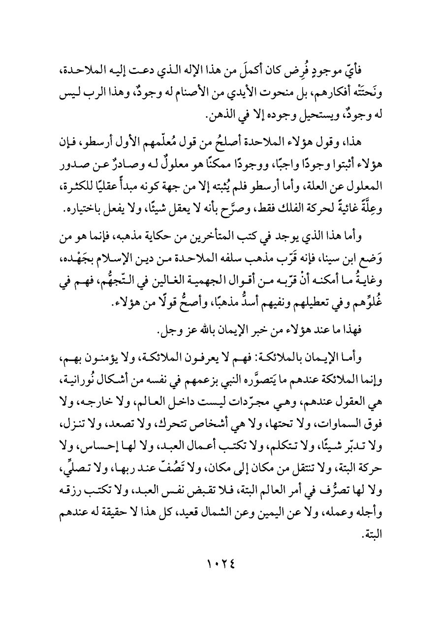 فأيّ موجودٍ فُرِض كان أكملَ من هذا الإله الذي دعت إليه الملاحدة، ونَحتَتْه أفكارهم، بل منحوت الأيدي من الأصنام له وجودٌ، وهذا الرب ليس له وجودٌ، ويستحيل وجوده إلا في الذهن.