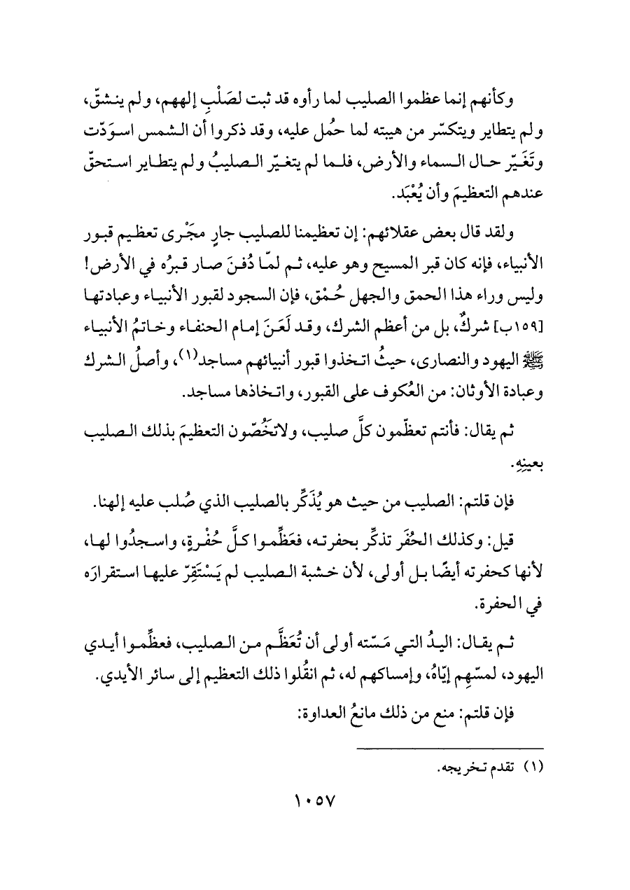 ثم يقال: فأنتم تعظّمون كلَّ صليب، ولا تَخُصّون التعظيمَ بذلك الصليب بعينِهِ.