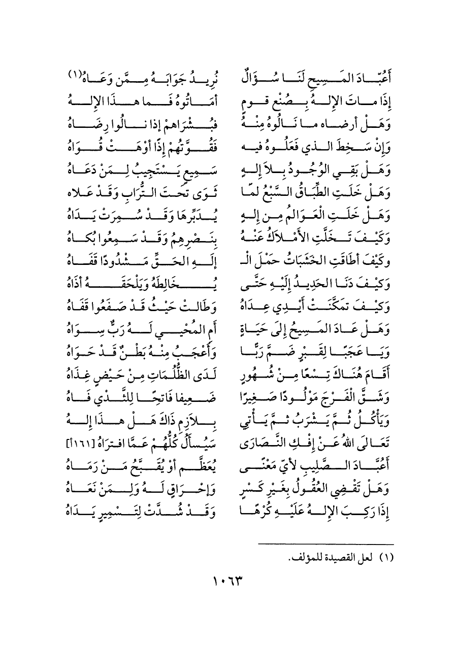 تَعَالَى اللهُ عَنْ إِفْكِ النَّصَارَى ... سَيُسأَلُ كُلُّهُمْ عَمَّا افترَاهُ [١٦١ أ]