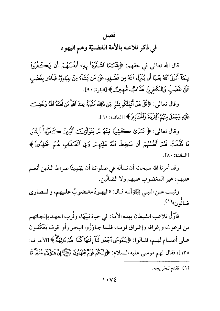 وثبت عن النبي - صلى الله عليه وسلم - أنه قال: «اليهودُ مغضوبٌ عليهم، والنصارى ضالُّون» (¬١).