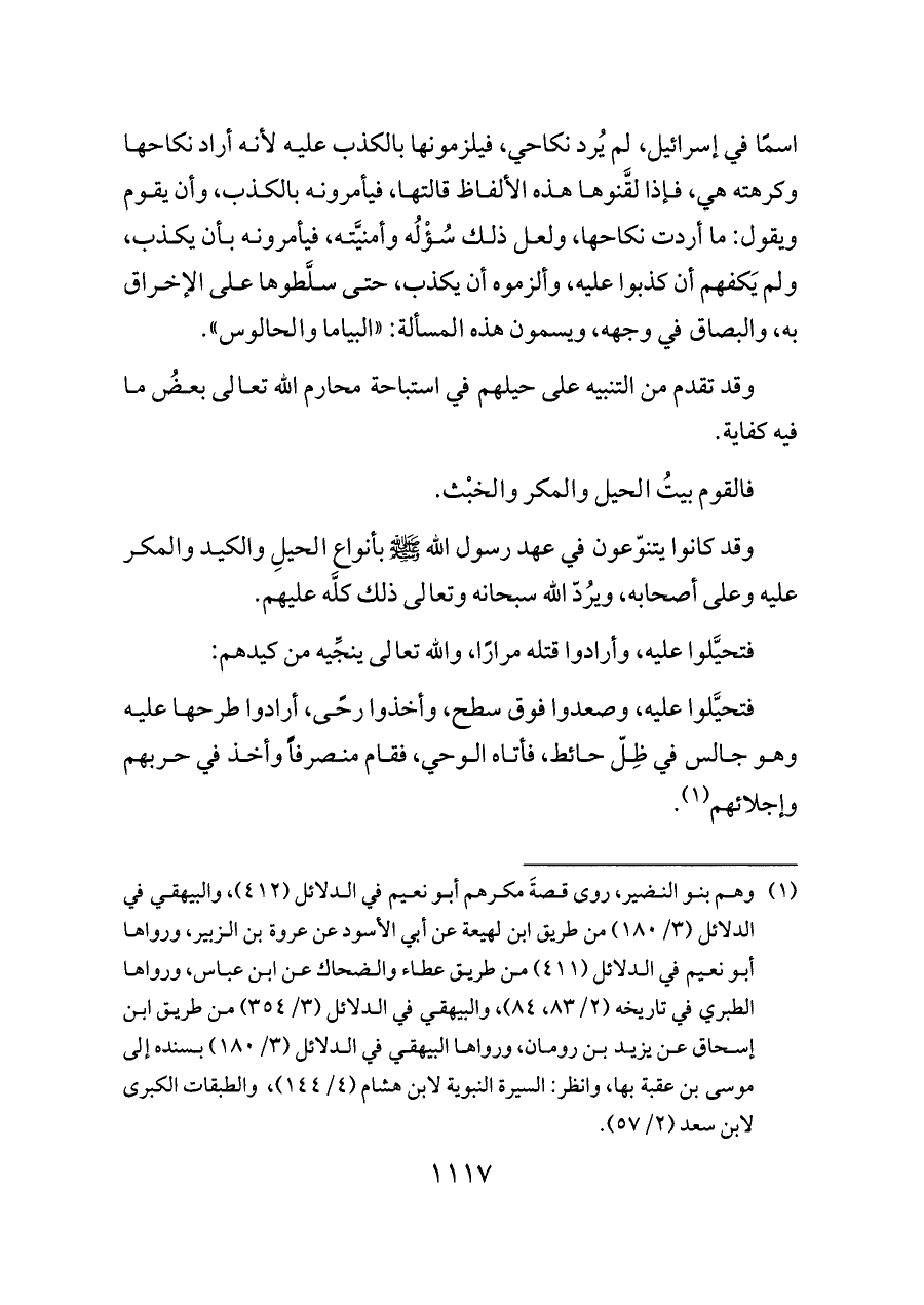 (¬١) وهم بنو النضير، روى قصةَ مكرهم أبو نعيم في الدلائل (٤١٢)، والبيهقي في الدلائل (٣/ ١٨٠) من طريق ابن لهيعة عن أبي الأسود عن عروة بن الزبير، ورواها أبو نعيم في الدلائل (٤١١) من طريق عطاء والضحاك عن ابن عباس، ورواها الطبري في تاريخه (٢/ ٨٣، ٨٤)، والبيهقي في الدلائل (٣/ ٣٥٤) من طريق ابن إسحاق عن يزيد بن رومان، ورواها البيهقي في الدلائل (٣/ ١٨٠) بسنده إلى موسى بن عقبة بها، وانظر: السيرة النبوية لابن هشام (٤/ ١٤٤)، والطبقات الكبرى لابن سعد (٢/ ٥٧).