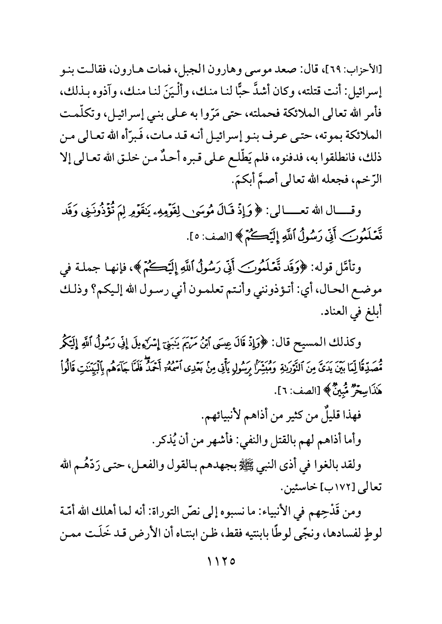 وقال الله تعالى: {وَإِذْ قَالَ مُوسَى لِقَوْمِهِ يَاقَوْمِ لِمَ تُؤْذُونَنِي وَقَدْ تَعْلَمُونَ أَنِّي رَسُولُ اللَّهِ إِلَيْكُمْ} [الصف: ٥].