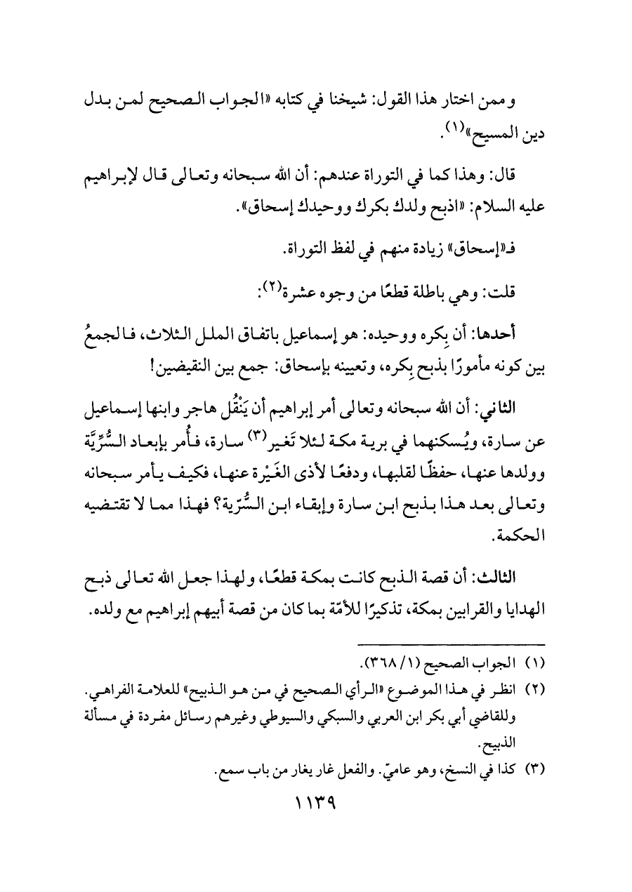 (¬٢) انظر في هذا الموضوع «الرأي الصحيح في من هو الذبيح» للعلامة الفراهي. وللقاضي أبي بكر ابن العربي والسبكي والسيوطي وغيرهم رسائل مفردة في مسألة الذبيح.