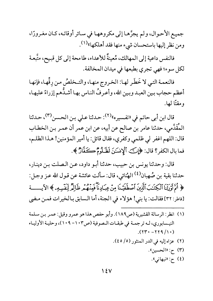 (¬١) انظر: الرسالة القشيرية (ص ١٨٩). وأبو حفص هذا هو عمرو وقيل: عمر بن سلمة النيسابوري، له ترجمة في طبقات الصوفية (ص ١٠٣ - ١٠٩)، وحلية الأولياء (١٠/ ٢٢٩ - ٢٣٠).