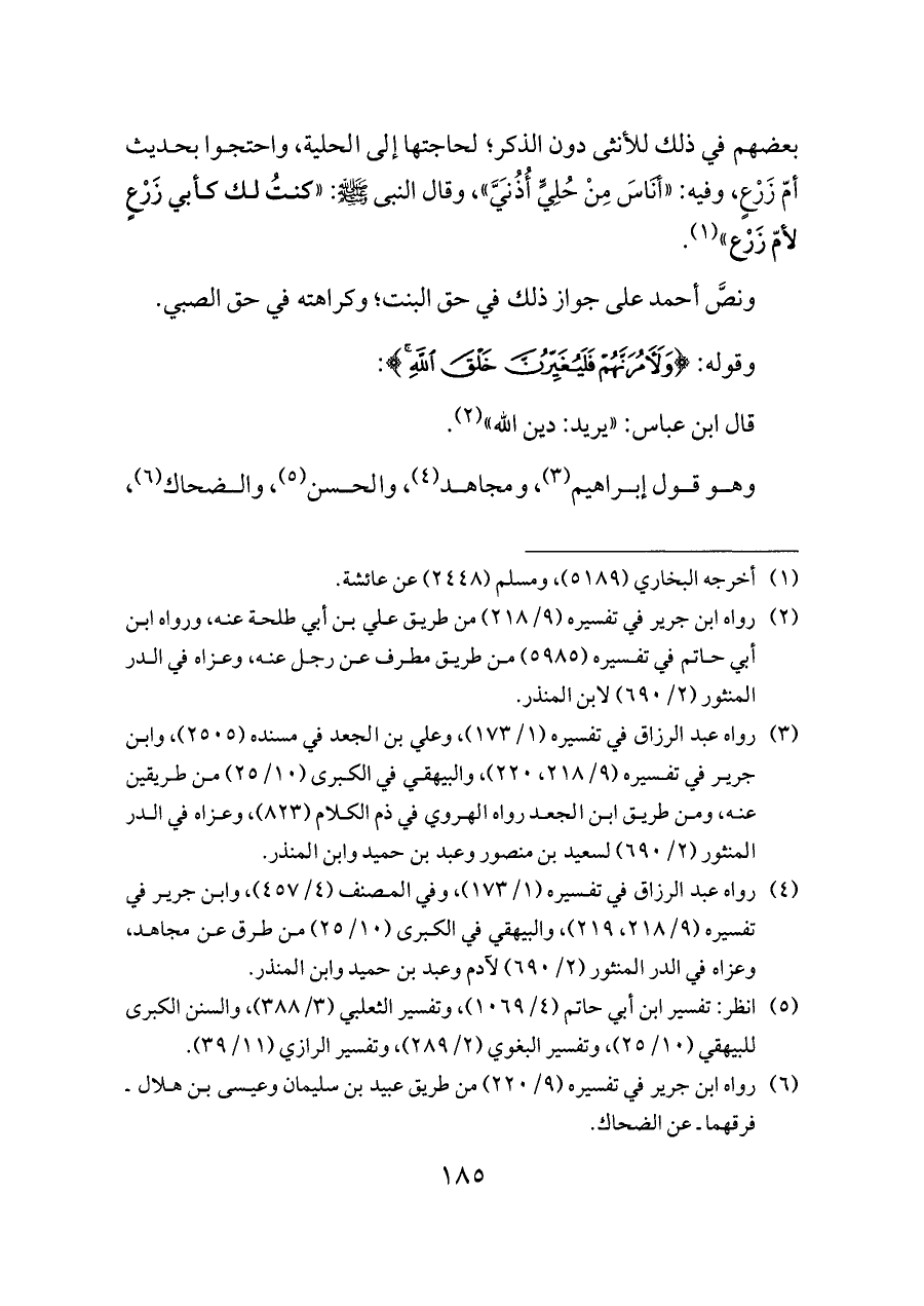 (¬٥) انظر: تفسير ابن أبي حاتم (٤/ ١٠٦٩)، وتفسير الثعلبي (٣/ ٣٨٨)، والسنن الكبرى للبيهقي (١٠/ ٢٥)، وتفسير البغوي (٢/ ٢٨٩)، وتفسير الرازي (١١/ ٣٩).