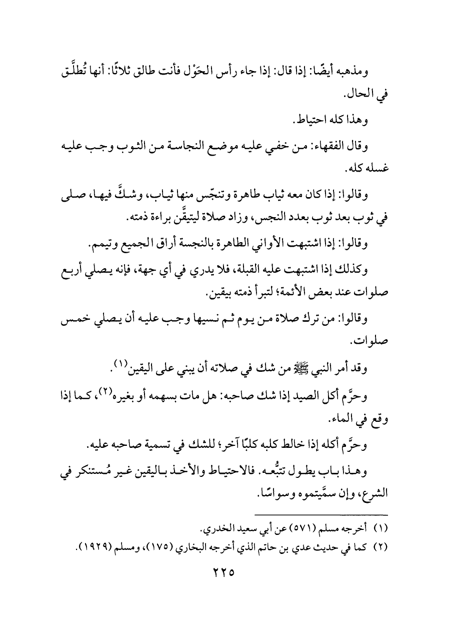 وهذا باب يطول تتبُّعه. فالاحتياط والأخذ باليقين غير مُستنكر في الشرع، وإن سمَّيتموه وسواسًا.