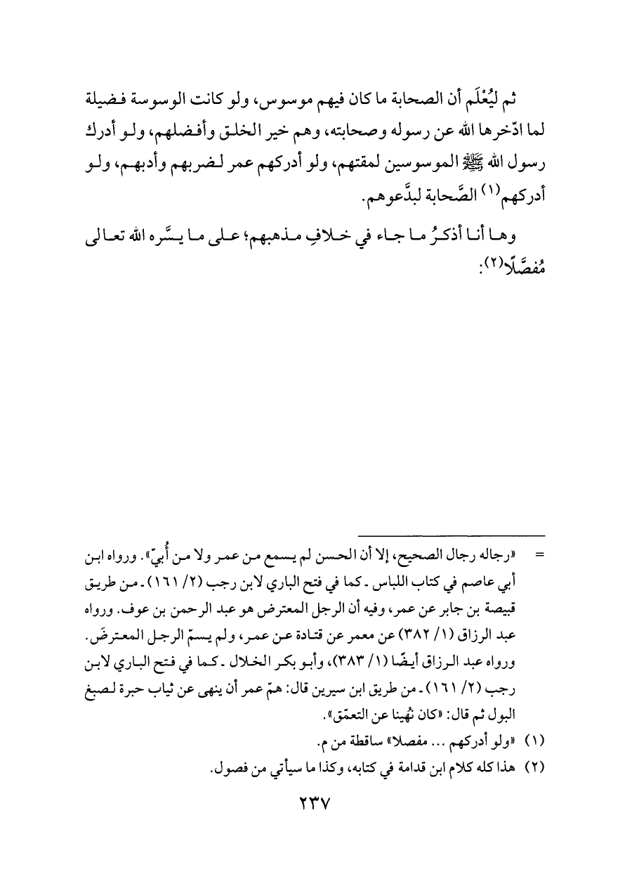 (¬٢) هذا كله كلام ابن قدامة في كتابه، وكذا ما سيأتي من فصول.