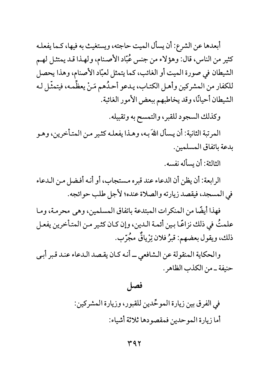 في الفرق بين زيارة الموحِّدين للقبور، وزيارة المشركين: