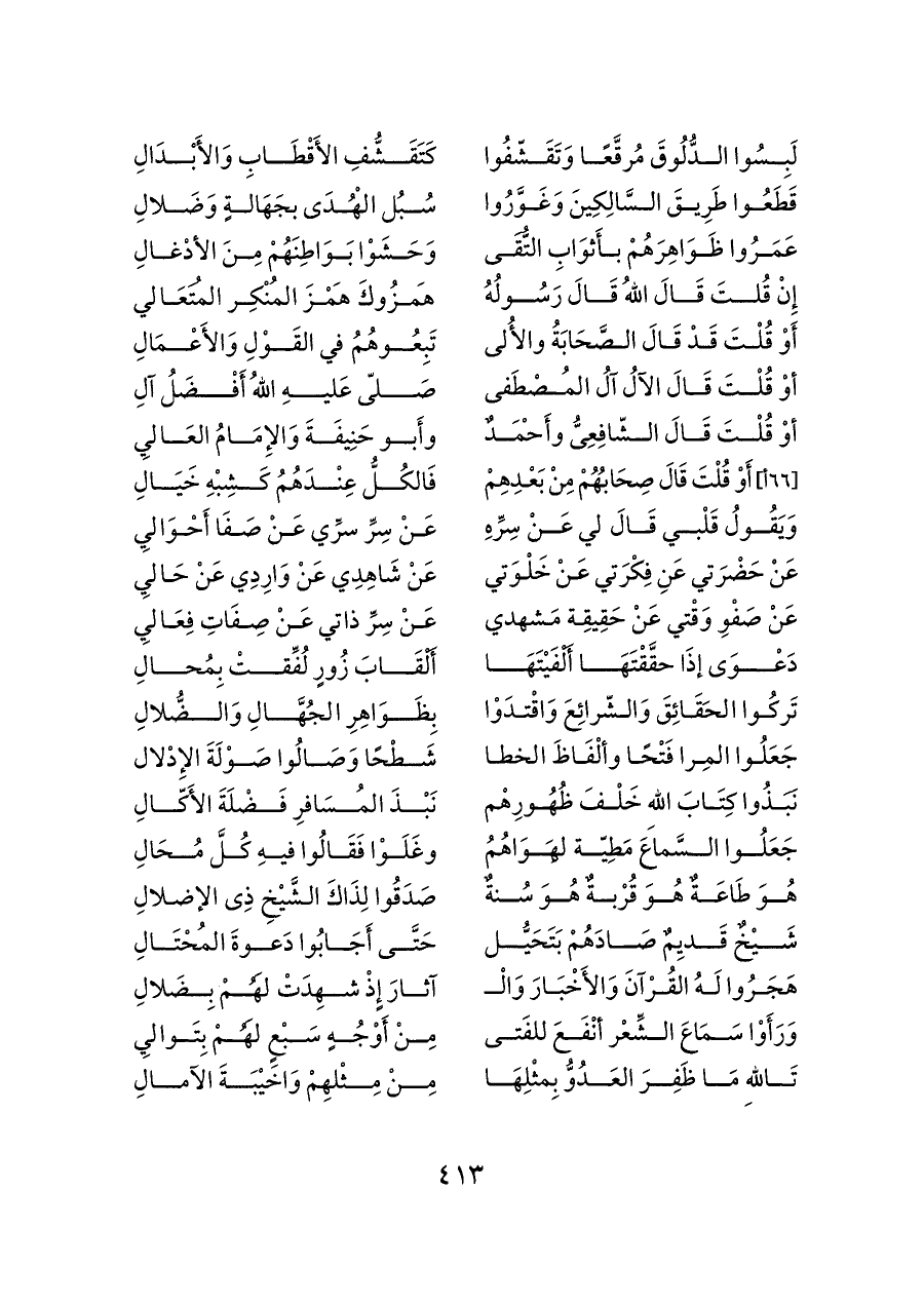لَبِسُوا الدُّلُوقَ مُرقَّعًا وَتَقَشّفُوا ... كَتَقَشُّفِ الأَقْطَابِ وَالأَبْدَالِ