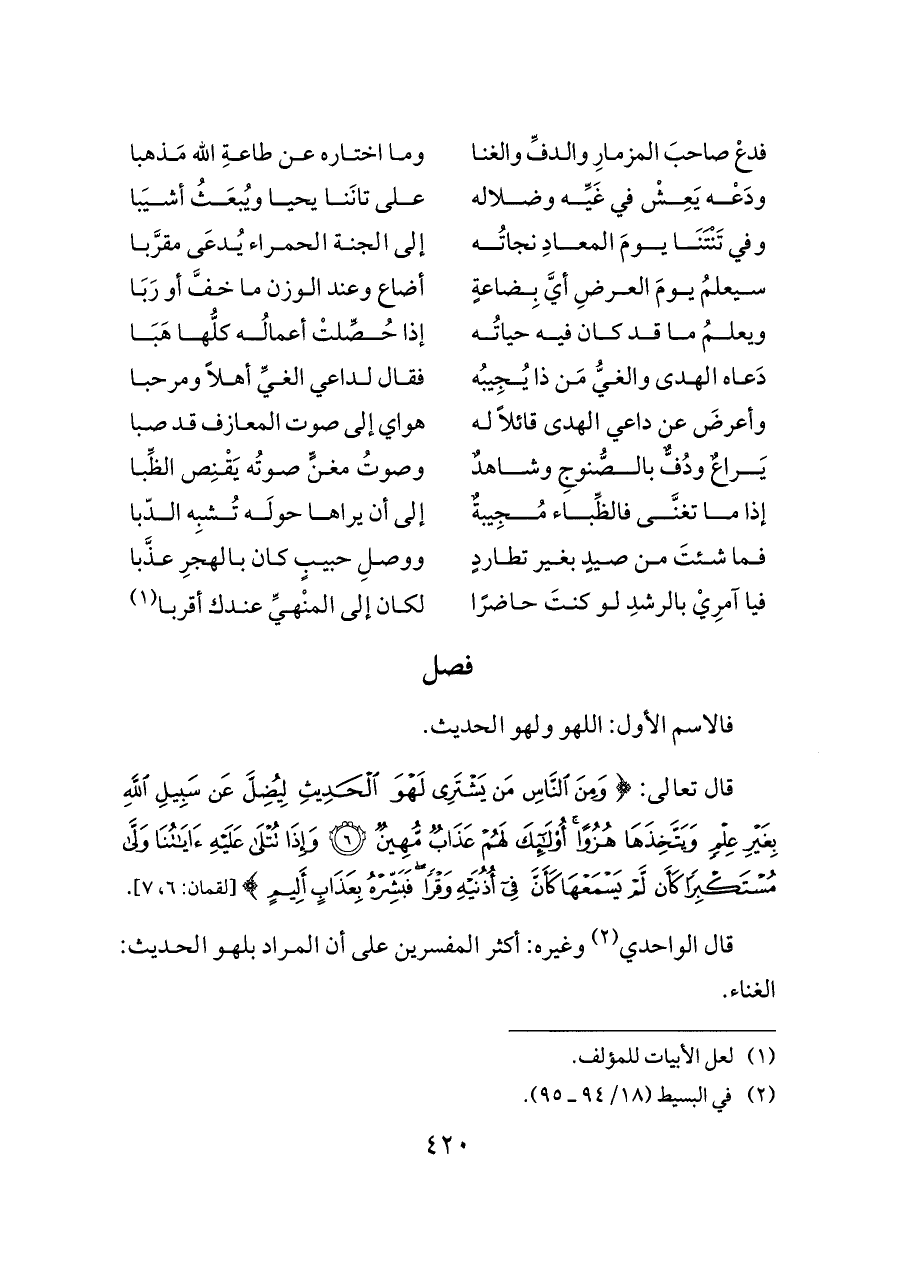 قال تعالى: {وَمِنَ النَّاسِ مَنْ يَشْتَرِي لَهْوَ الْحَدِيثِ لِيُضِلَّ عَنْ سَبِيلِ اللَّهِ بِغَيْرِ عِلْمٍ وَيَتَّخِذَهَا هُزُوًا أُولَئِكَ لَهُمْ عَذَابٌ مُهِينٌ (٦) وَإِذَا تُتْلَى عَلَيْهِ آيَاتُنَا وَلَّى مُسْتَكْبِرًا كَأَنْ لَمْ يَسْمَعْهَا كَأَنَّ فِي أُذُنَيْهِ وَقْرًا فَبَشِّرْهُ بِعَذَابٍ أَلِيمٍ} [لقمان: ٦، ٧].