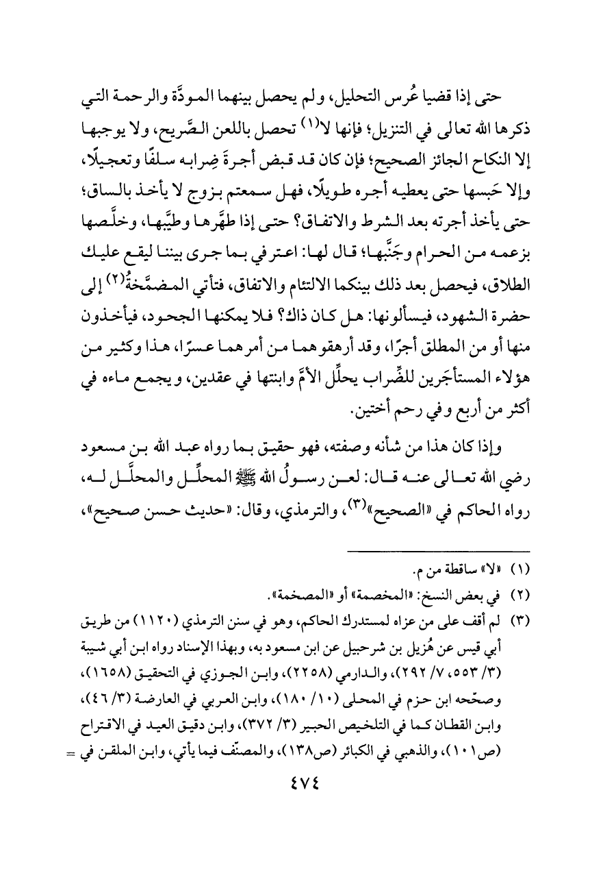وإذا كان هذا من شأنه وصفته، فهو حقيق بما رواه عبد الله بن مسعود رضي الله تعالى عنه قال: لعن رسولُ الله - صلى الله عليه وسلم - المحلِّل والمحلَّل له،