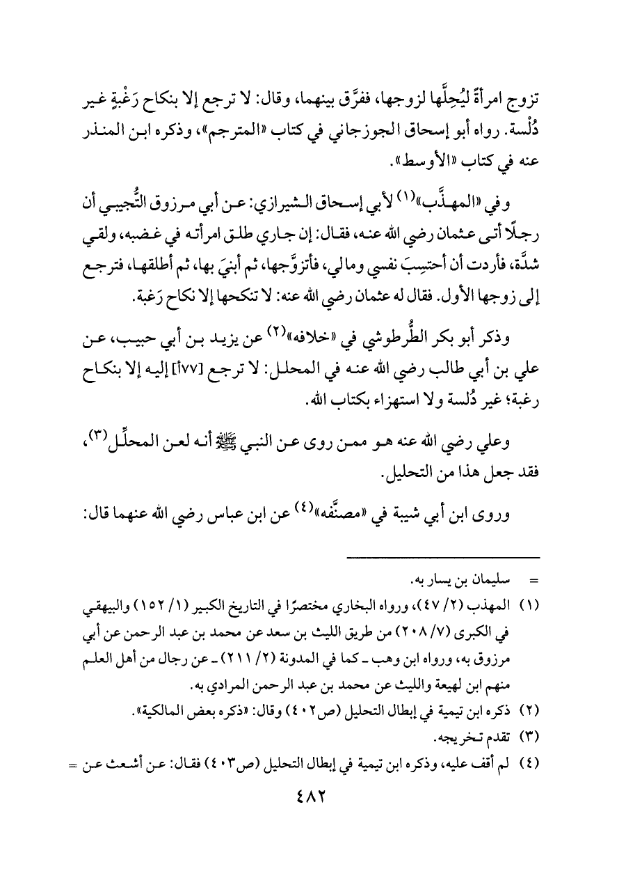 (¬٢) ذكره ابن تيمية في إبطال التحليل (ص ٤٠٢) وقال: «ذكره بعض المالكية».