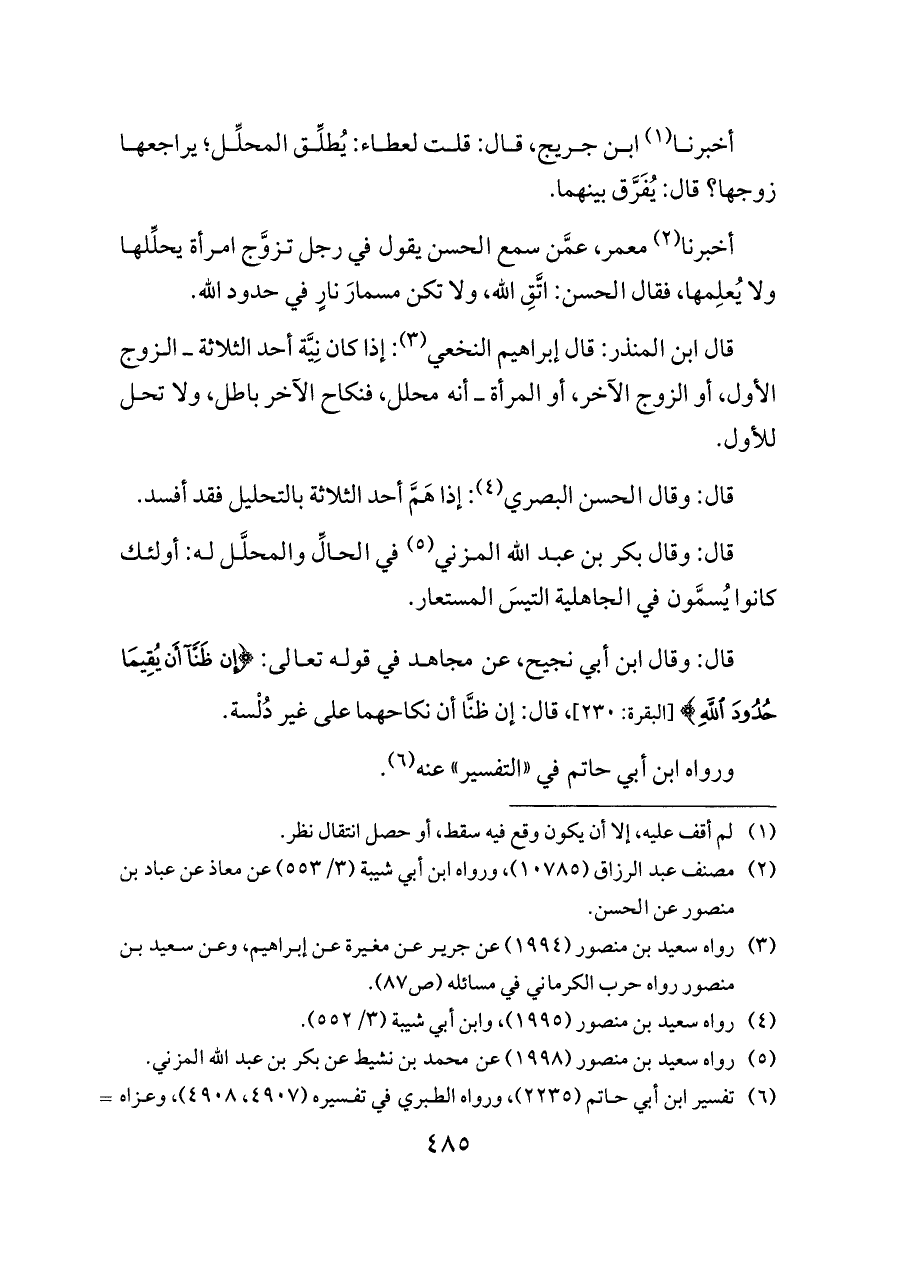 (¬٣) رواه سعيد بن منصور (١٩٩٤) عن جرير عن مغيرة عن إبراهيم، وعن سعيد بن منصور رواه حرب الكرماني في مسائله (ص ٨٧).