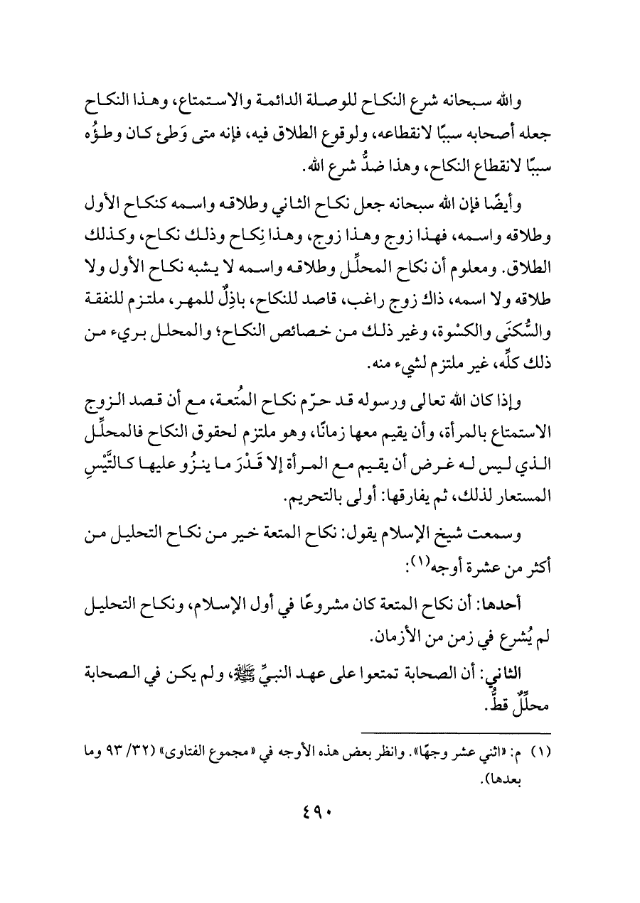 وسمعت شيخ الإسلام يقول: نكاح المتعة خير من نكاح التحليل من أكثر من عشرة أوجه (¬١):