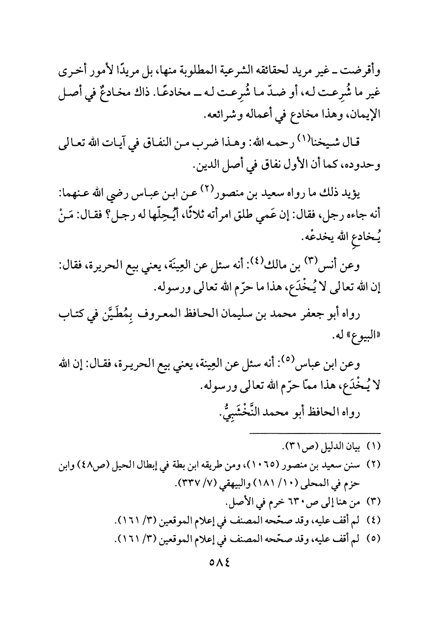 (¬٢) سنن سعيد بن منصور (١٠٦٥)، ومن طريقه ابن بطة في إبطال الحيل (ص ٤٨) وابن حزم في المحلى (١٠/ ١٨١) والبيهقي (٧/ ٣٣٧).