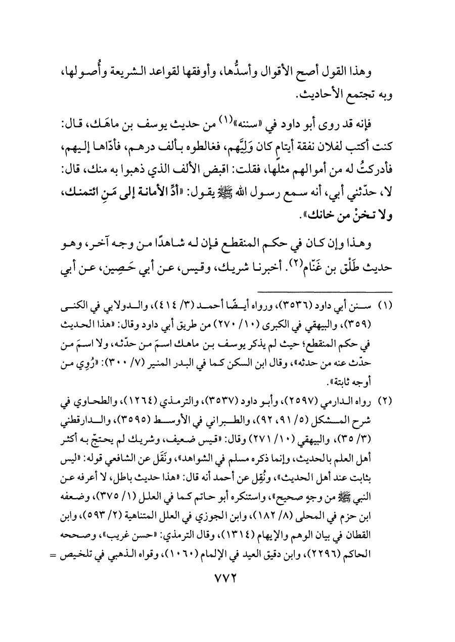 (¬١) سنن أبي داود (٣٥٣٦)، ورواه أيضًا أحمد (٣/ ٤١٤)، والدولابي في الكنى (٣٥٩)، والبيهقي في الكبرى (١٠/ ٢٧٠) من طريق أبي داود وقال: «هذا الحديث في حكم المنقطع؛ حيث لم يذكر يوسف بن ماهك اسمَ من حدّثه، ولا اسمَ من حدّث عنه من حدثه»، وقال ابن السكن كما في البدر المنير (٧/ ٣٠٠): «رُوِي من أوجه ثابتة».