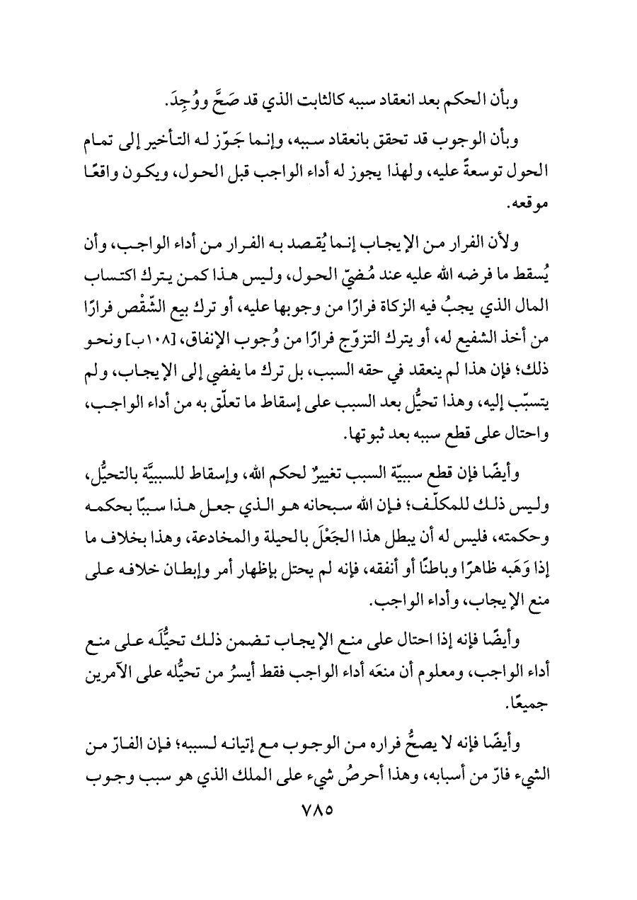 وأيضًا فإنه لا يصحُّ فراره من الوجوب مع إتيانه لسببه؛ فإن الفارّ من الشيء فارّ من أسبابه، وهذا أحرصُ شيء على الملك الذي هو سبب وجوب