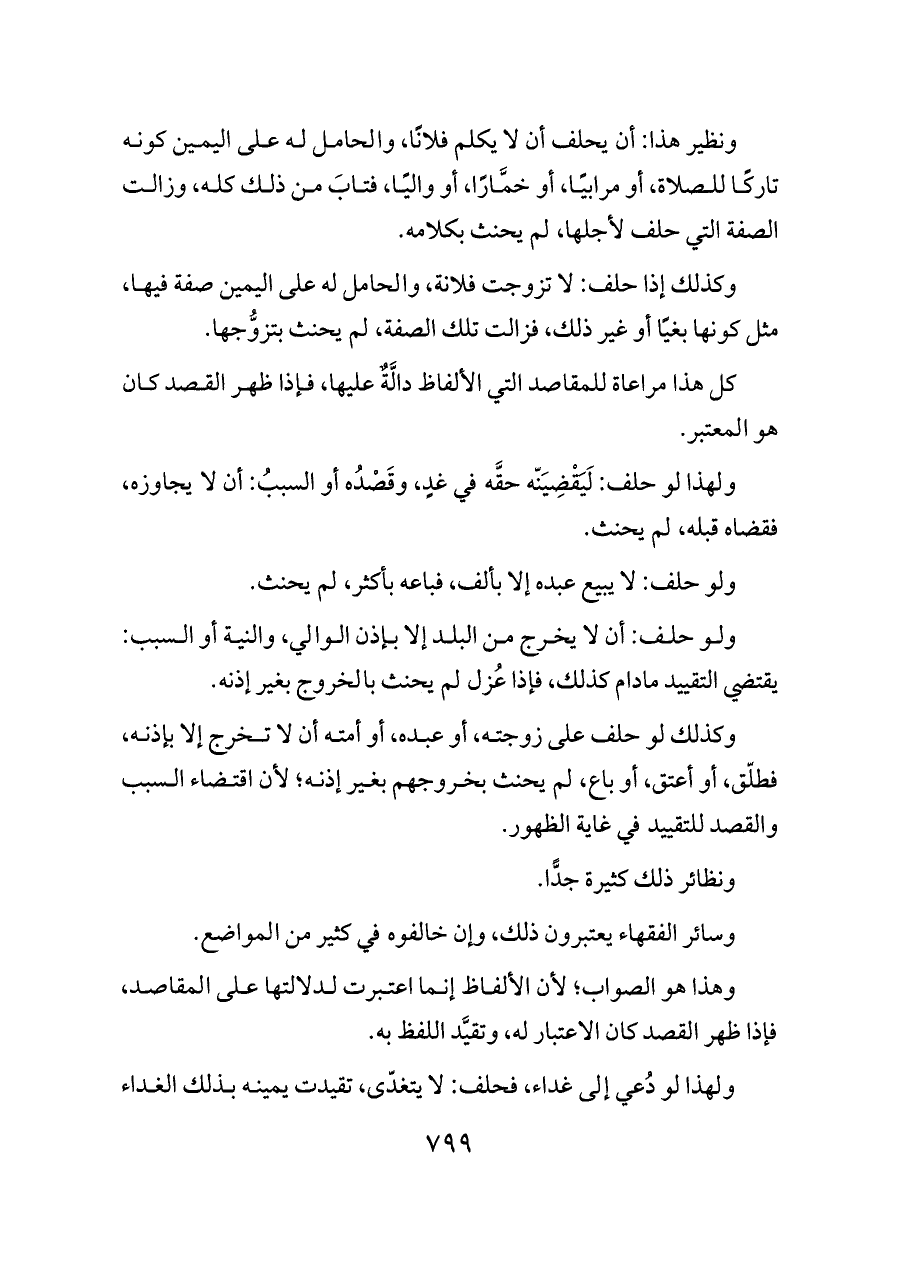 وهذا هو الصواب؛ لأن الألفاظ إنما اعتبرت لدلالتها على المقاصد، فإذا ظهر القصد كان الاعتبار له، وتقيَّد اللفظ به.