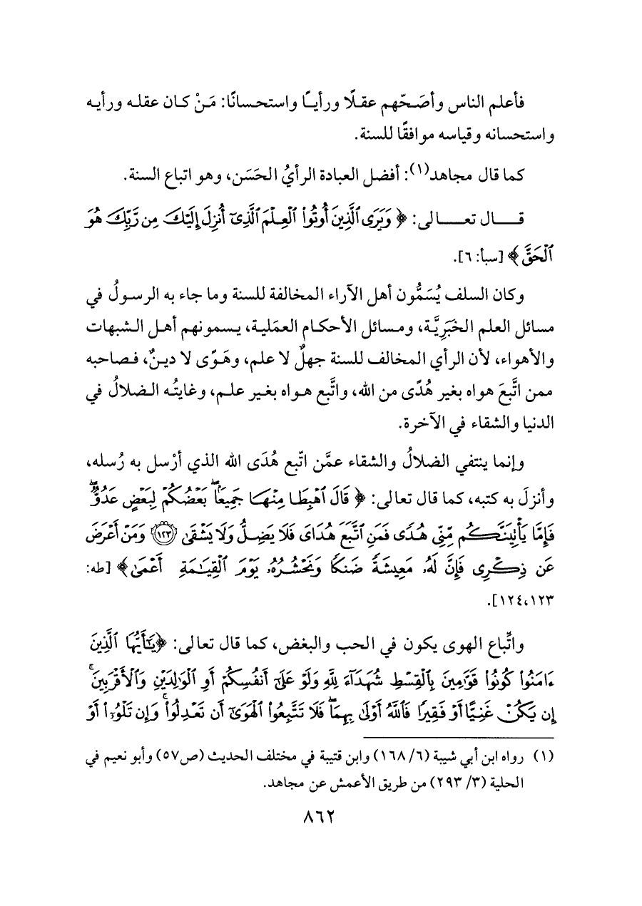 فأعلم الناس وأصَحّهم عقلًا ورأيًا واستحسانًا: مَنْ كان عقله ورأيه واستحسانه وقياسه موافقًا للسنة.
