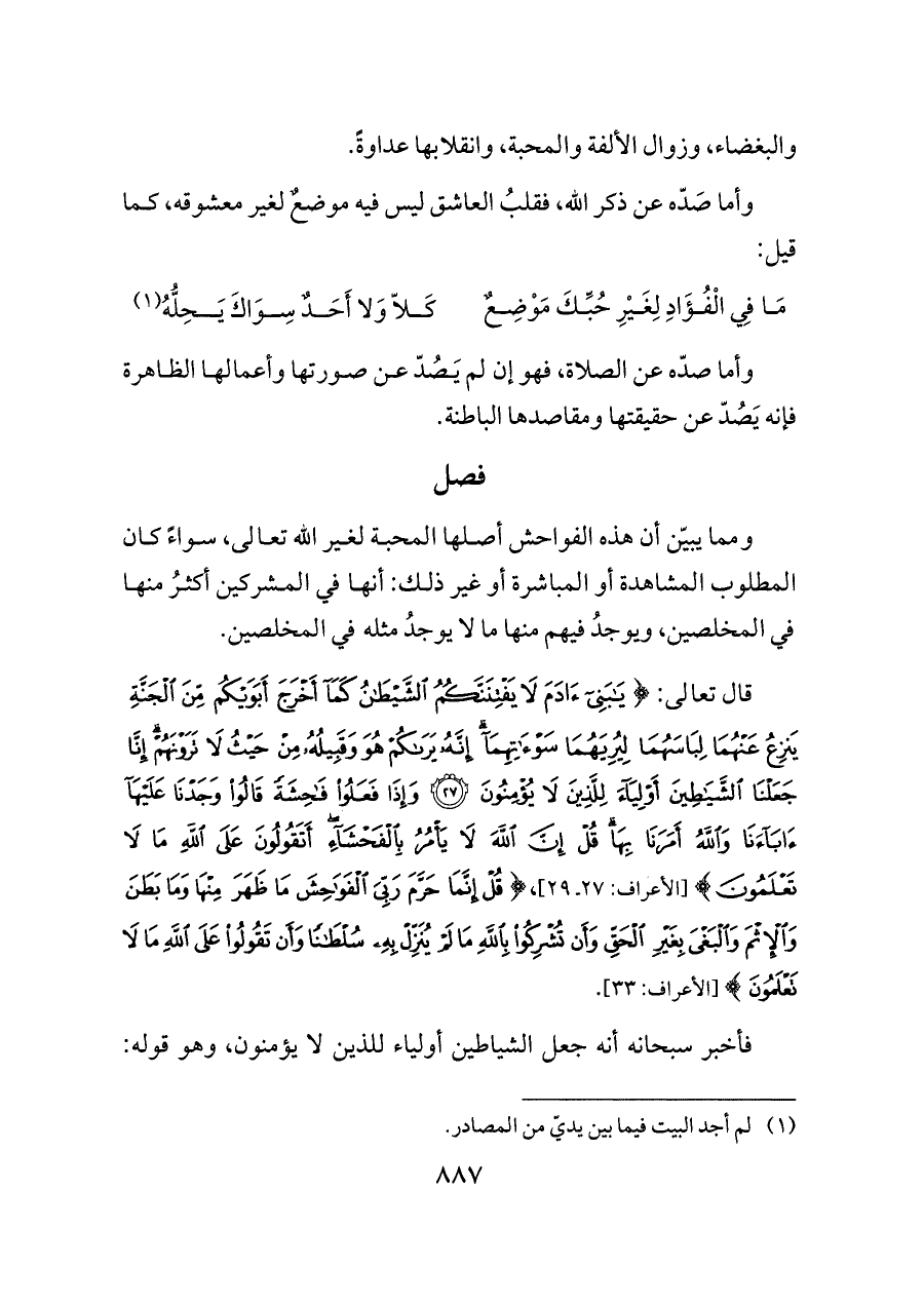 وأما صَدّه عن ذكر الله، فقلبُ العاشق ليس فيه موضعٌ لغير معشوقه، كما قيل: