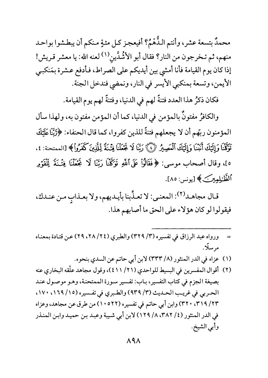 (¬٢) أقوال المفسرين في البسيط للواحدي (٢١/ ٤١١)، وقول مجاهد علّقه البخاري عنه بصيغة الجزم في كتاب التفسير، باب: تفسير سورة الممتحنة، وهو موصول عند الحربي في غريب الحديث (٣/ ٩٣٩) والطبري في تفسيره (١٥/ ١٦٩، ١٧٠، ٢٣/ ٣١٩، ٣٢٠) وابن أبي حاتم في تفسيره (١٠٥٢٢) من طرق عن مجاهد، وعزاه في الدر المنثور (٤/ ٣٨٢، ٨/ ١٢٩) لابن أبي شيبة وعبد بن حميد وابن المنذر وأبي الشيخ.