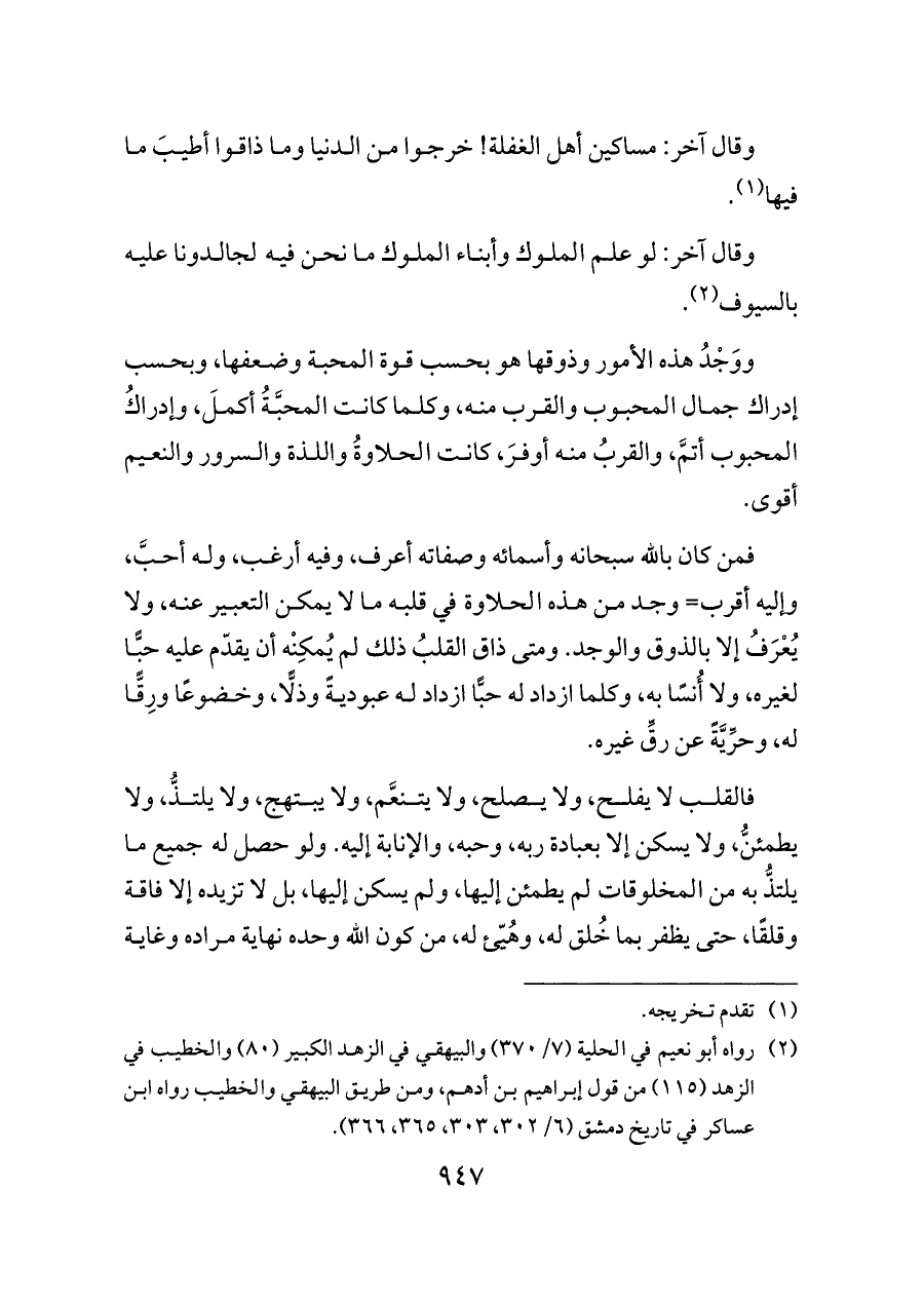 (¬٢) رواه أبو نعيم في الحلية (٧/ ٣٧٠) والبيهقي في الزهد الكبير (٨٠) والخطيب في الزهد (١١٥) من قول إبراهيم بن أدهم، ومن طريق البيهقي والخطيب رواه ابن عساكر في تاريخ دمشق (٦/ ٣٠٢، ٣٠٣، ٣٦٥، ٣٦٦).