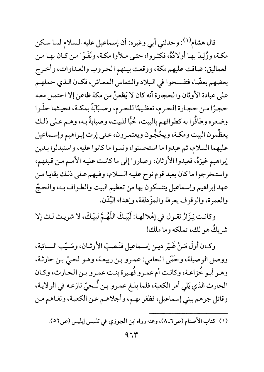 (¬١) كتاب الأصنام (ص ٦ ـ ٨)، وعنه رواه ابن الجوزي في تلبيس إبليس (ص ٥٢).