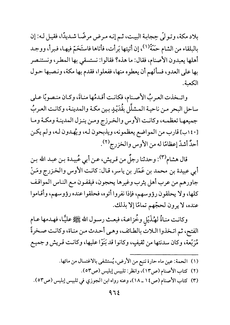 (¬٣) كتاب الأصنام (ص ١٤ ــ ١٨)، وعنه رواه ابن الجوزي في تلبيس إبليس (ص ٥٣).