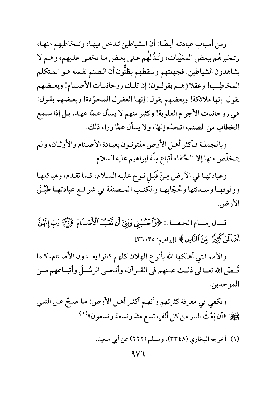 وبالجملة فأكثر أهل الأرض مفتونون بعبادة الأصنام والأوثان، ولم يتخلّص منها إلا الحُنفاء أتباع مِلّة إبراهيم عليه السلام.