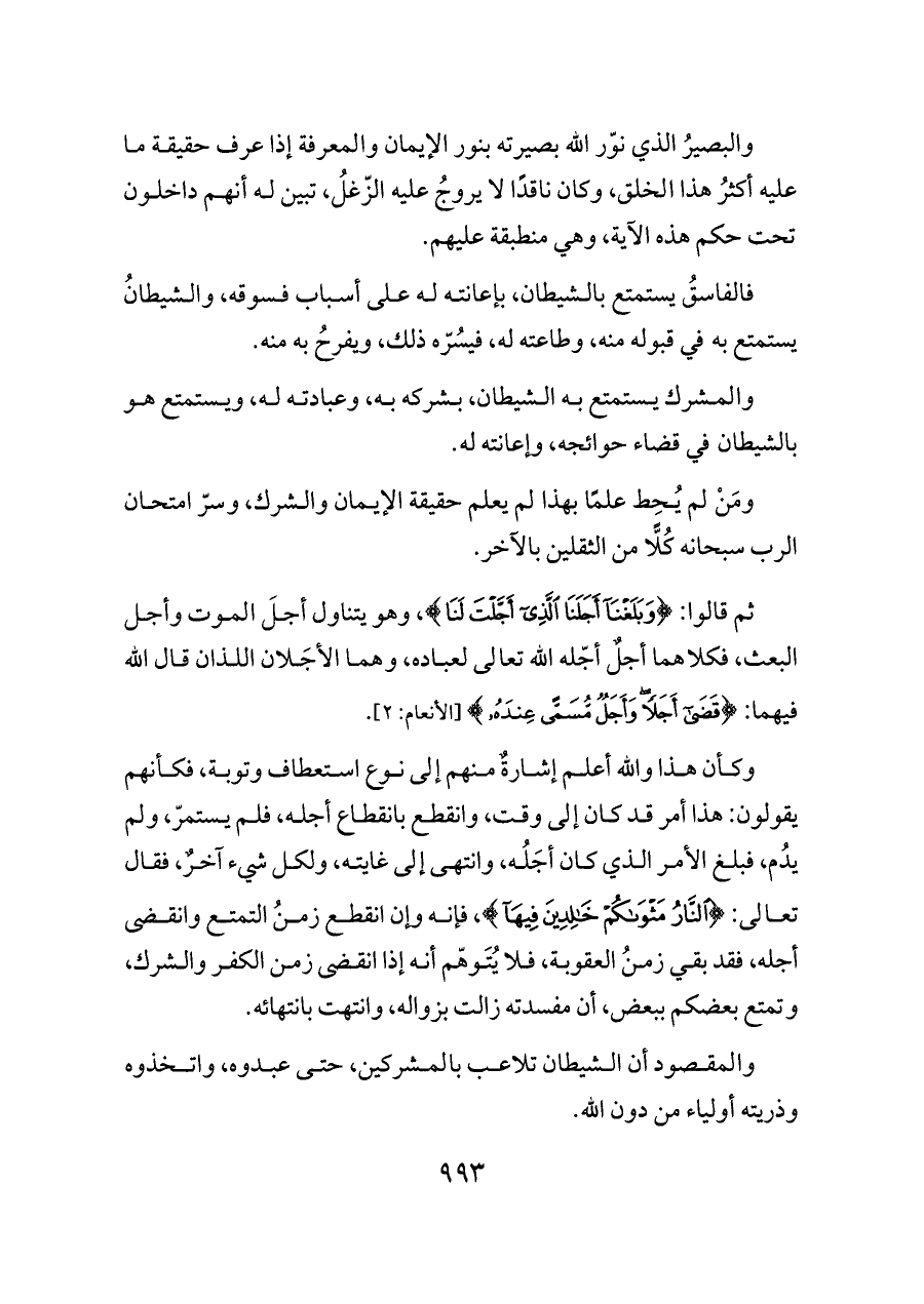 ومَنْ لم يُحِط علمًا بهذا لم يعلم حقيقة الإيمان والشرك، وسرّ امتحان الرب سبحانه كُلًّا من الثقلين بالآخر.
