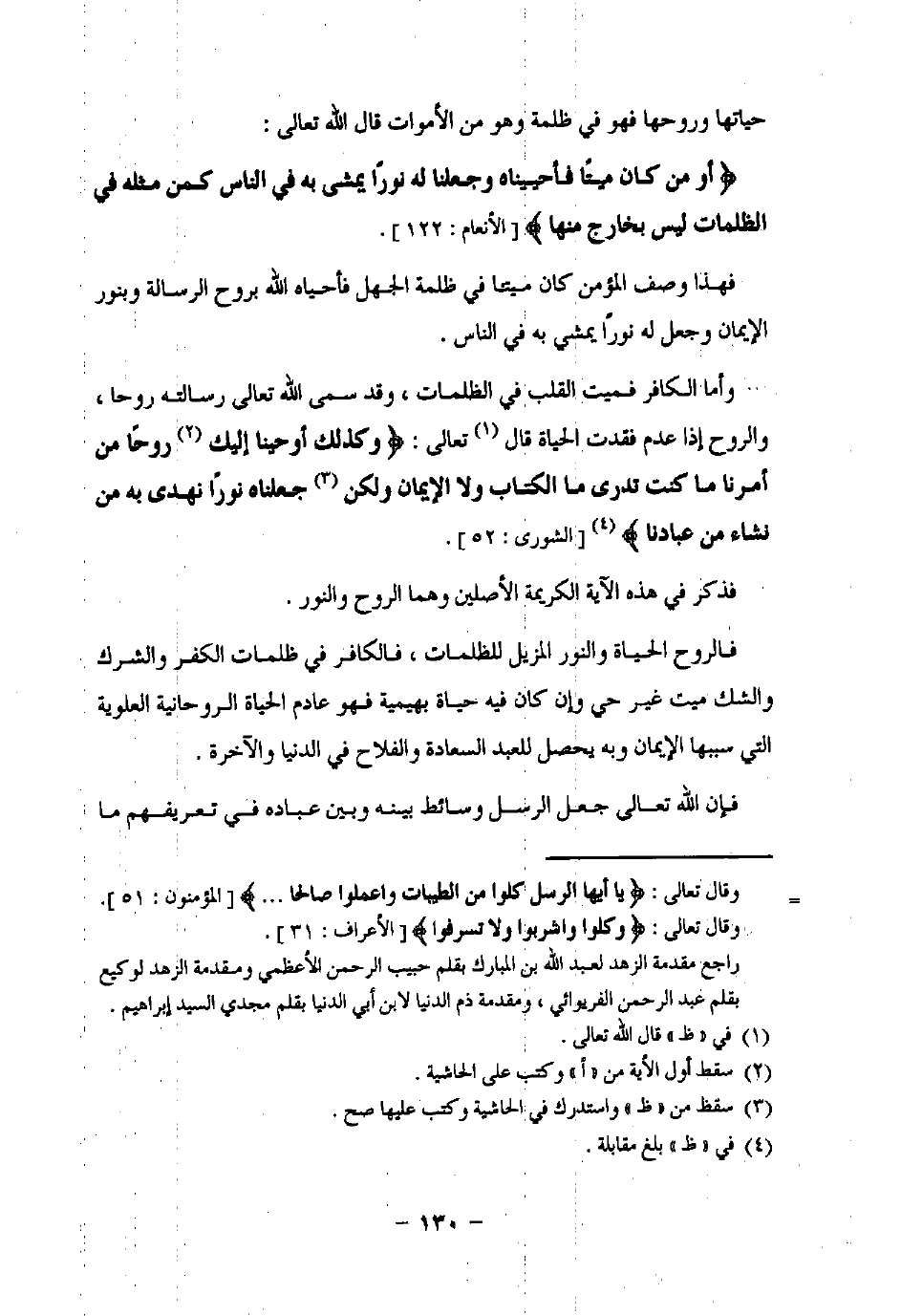 {أَوَمَنْ كَانَ مَيْتًا فَأَحْيَيْنَاهُ وَجَعَلْنَا لَهُ نُورًا يَمْشِي بِهِ فِي النَّاسِ كَمَنْ مَثَلُهُ فِي الظُّلُمَاتِ لَيْسَ بِخَارِجٍ مِنْهَا} [الأنعام: 122].