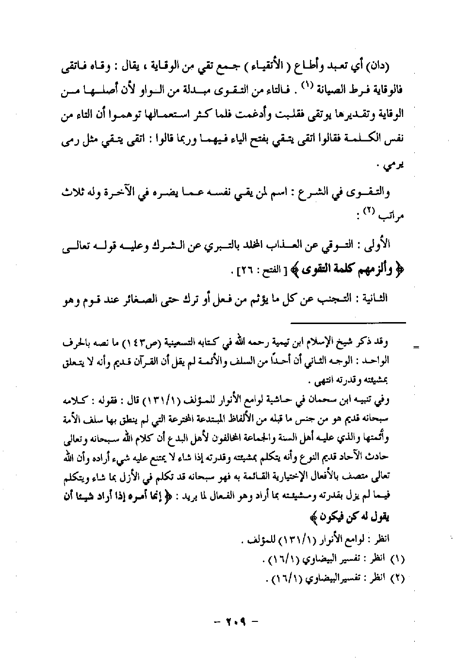= وقد ذكر شيخ الإسلام ابن تيمية رحمه اللَّه في كتابه التسعينية (ص 143) ما نصه بالحرف الواحد: الوجه الثاني أن أحدًا من السلف والأئمة لم يقل أن القرآن قديم وأنه لا يتعلق بمشيئته وقدرته انتهى.
