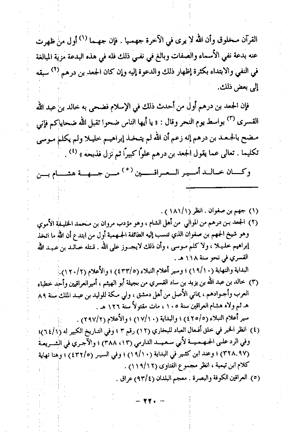 (¬2) الجعد بن درهم من الموالي من أهل الشام، وهو مؤدب مروان بن محمد الخليفة الأموي وهو شيخ الجهم بن صفوان الذي تنسب إليه الطائفة الجهمية أول من ابتدع أن اللَّه ما اتخذ إبراهيم خليلا, ولا كلم موسى، وأن ذلك لا يجوز على اللَّه. قتله خالد بن عبد اللَّه القسري في نحو سنة 118 هـ.