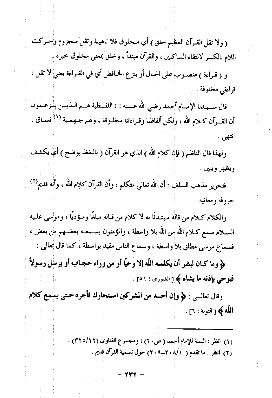 (¬1) انظر: السنة للإمام أحمد (ص 20)؛ ومجموع الفتاوى (12/ 325).