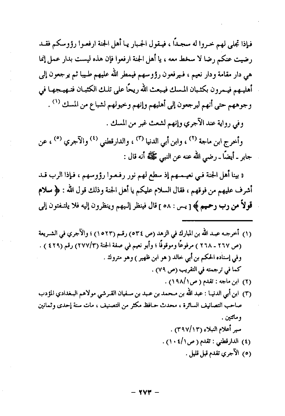 (¬1) أخرجه عبد اللَّه بن المبارك في الزهد (ص 534) رقم (1523)؛ والآجري في الشريعة (ص 267 - 268) مرفوعًا وموقوفًا، وأبو نعيم في صفة الجنة (3/ 277) رقم (429). وفي إسناده الحكم بن أبي خالد (هو ابن ظهير) وهو متروك.