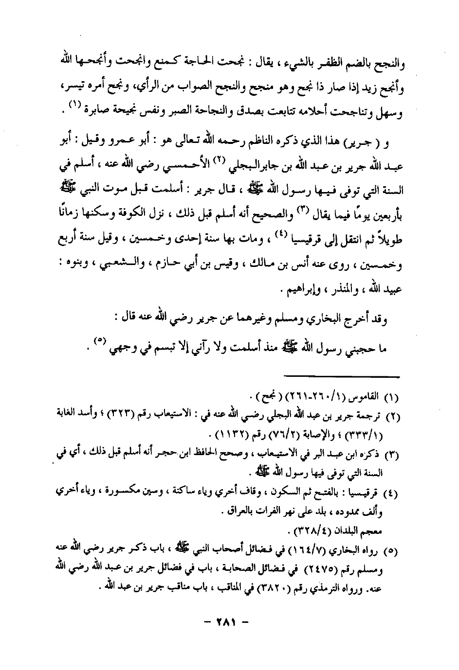 (¬2) ترجمة جرير بن عبد اللَّه البجلي رضي اللَّه عنه في: الاستيعاب رقم (323)؛ وأسد الغابة (1/ 333)؛ والإصابة (2/ 76) رقم (1132).